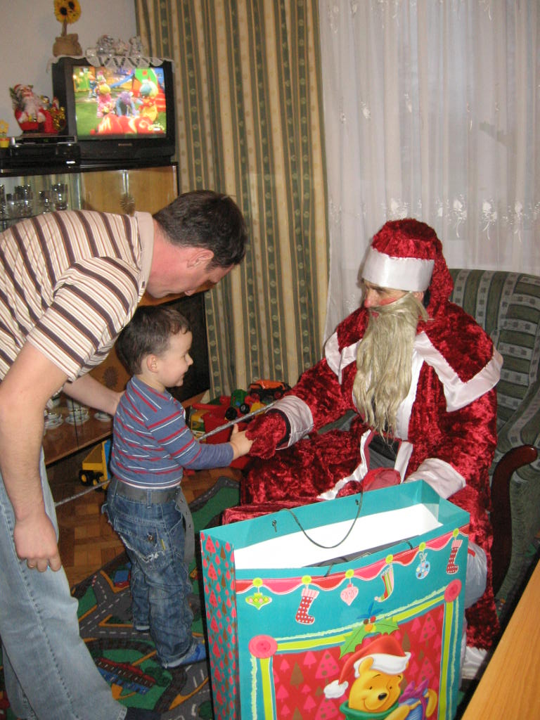 zaprzęgiem konnym krążył po naszej wsi i odwiedzał najmłodszych.
