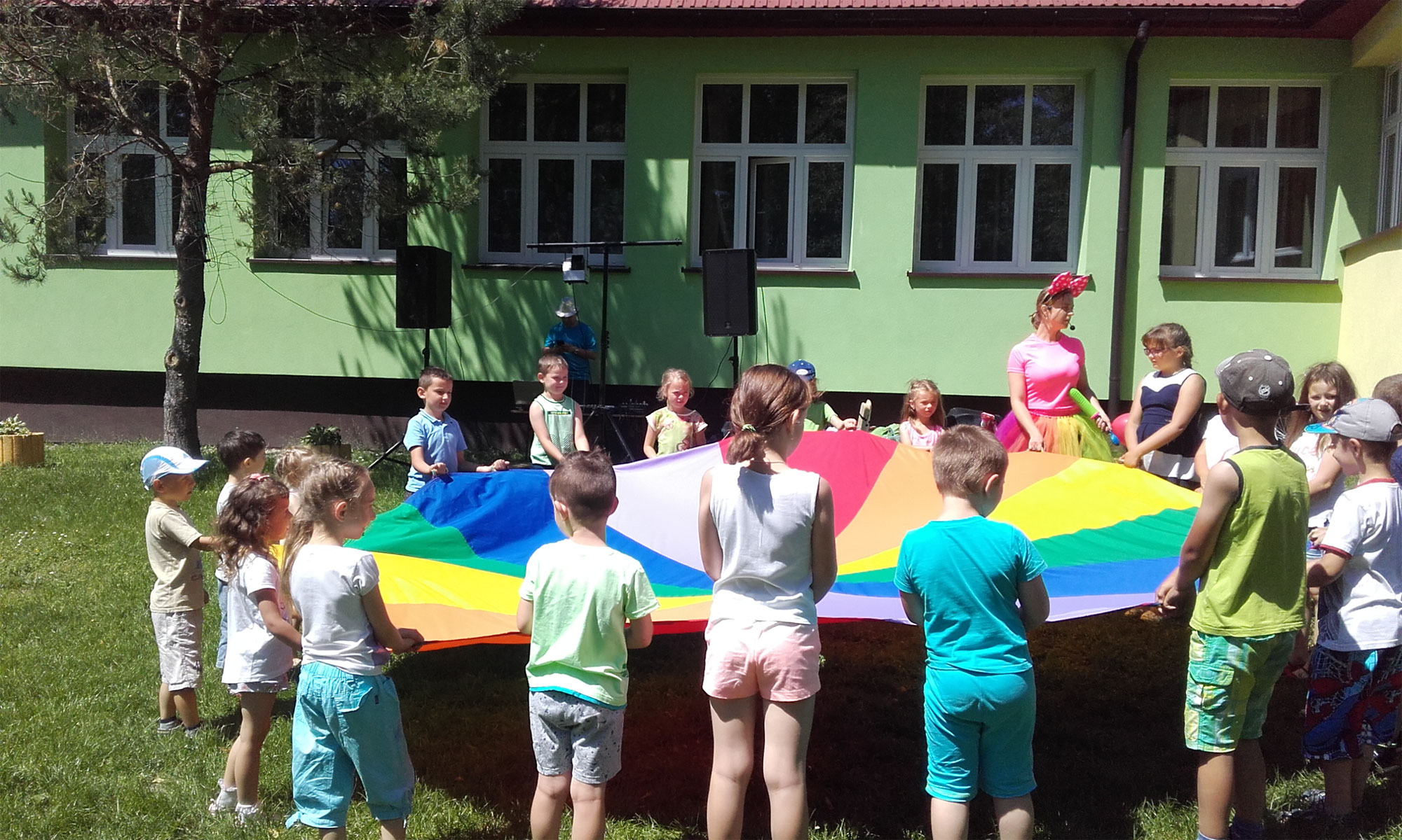 Ciekawych wrażeń artystycznych dostarczyła grupa animacyjna, która przeprowadziła zabawy dla dzieci. Były zabawy z chustą animacyjną , malowanie tatuaży, pokazy dużych i małych baniek.