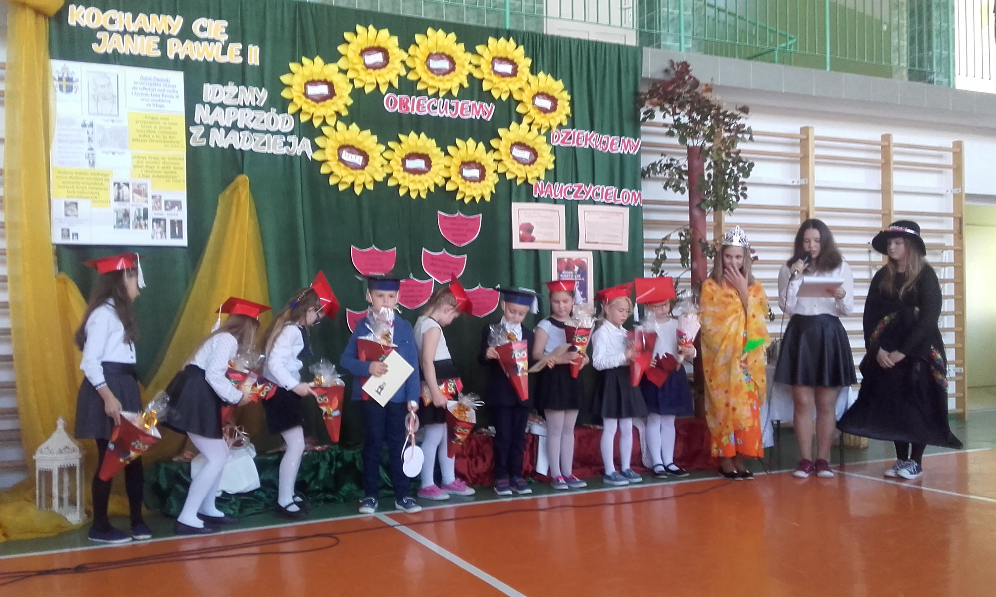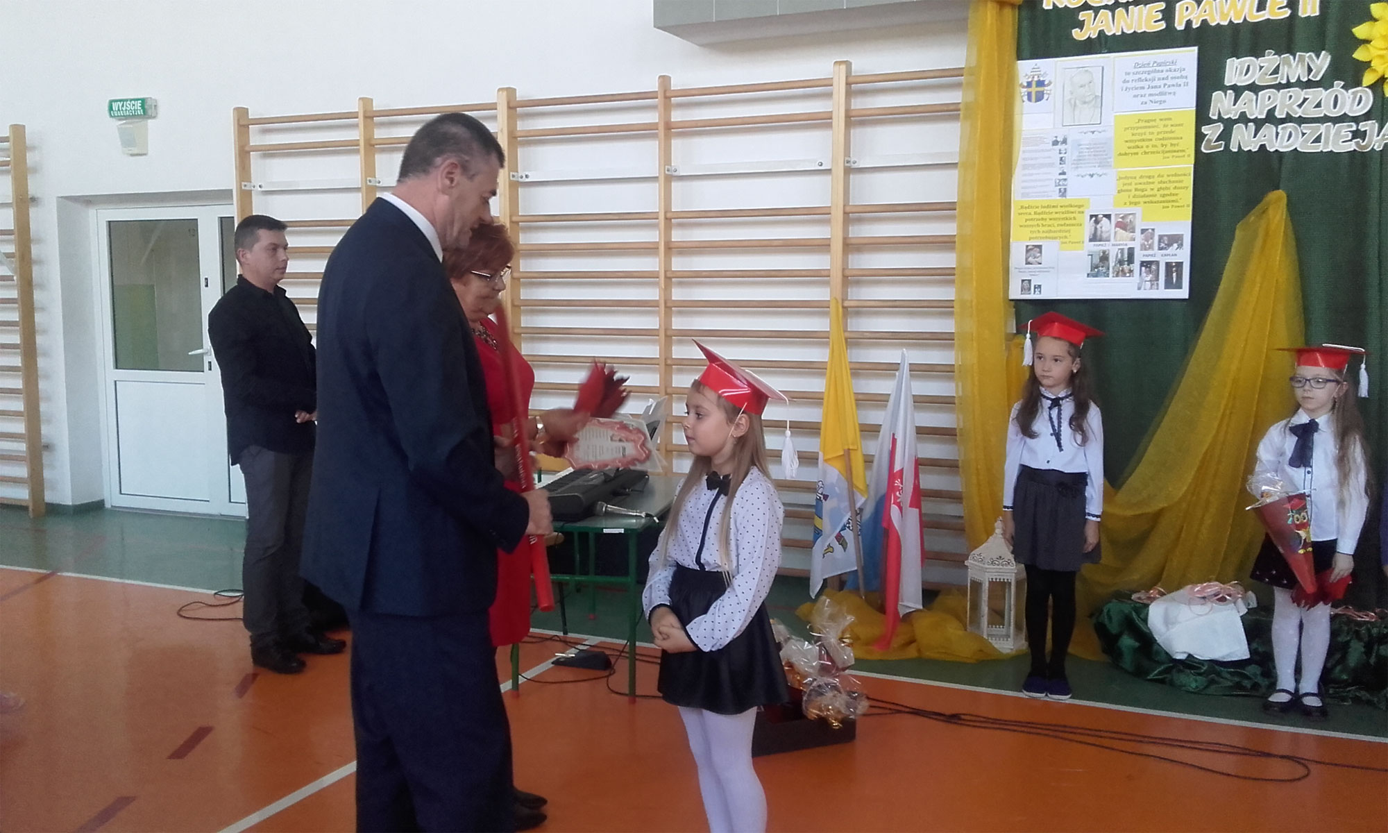 zadowolonym pierwszakom dyplomy i upominki. Przedstawiciele klasy pierwszej obiecali,