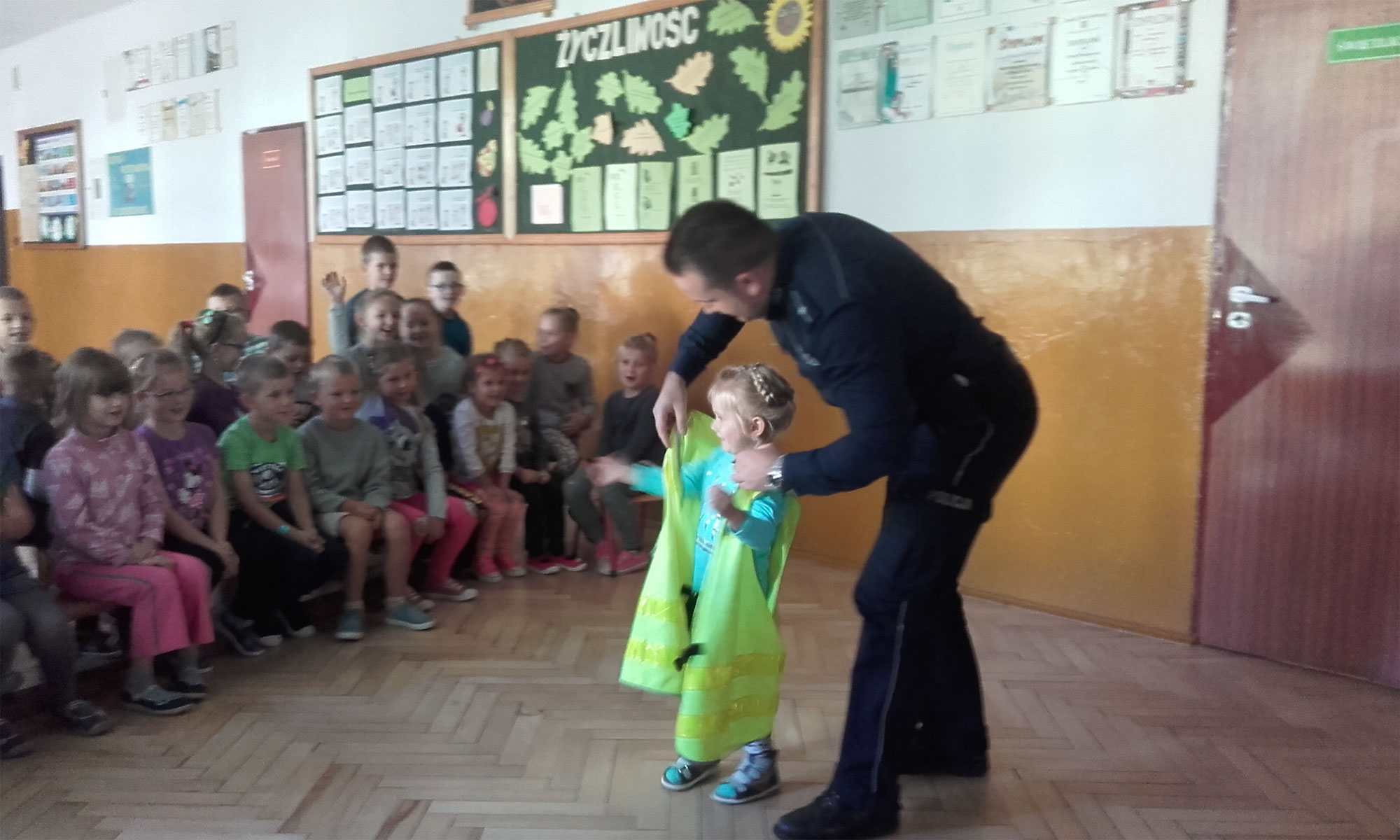 policjant uczulił także uczniów, aby zawsze pamiętali o zapinaniu pasów