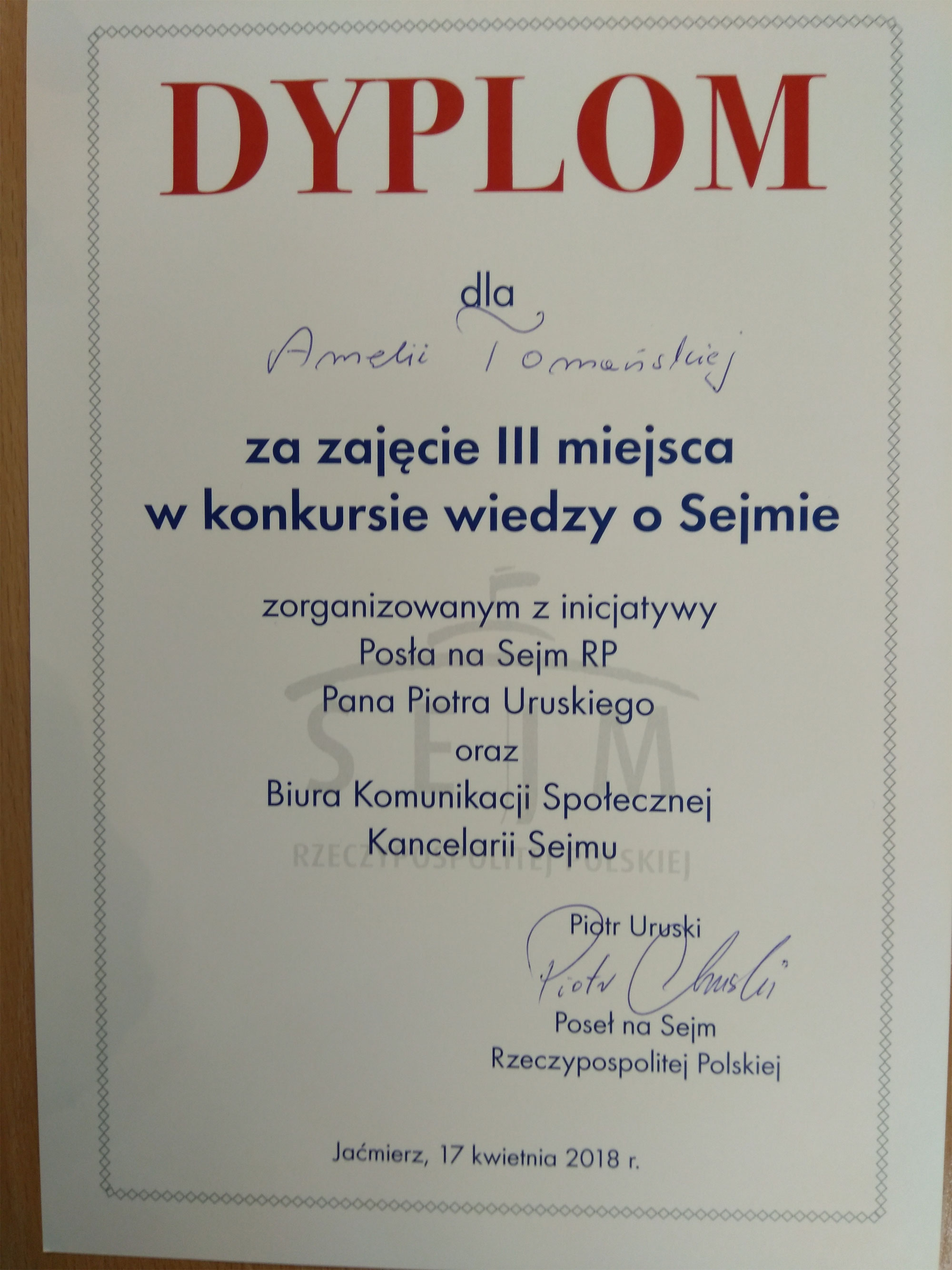 reprezentowało 5 uczniów; Łukasz Bałuszyński, Katarzyna Barna , Oliwier Drozd,