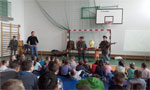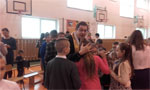 Konrad Górowski wraz ze swoim trenerem Panem Zającem odwiedził naszą szkołę,