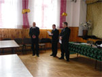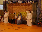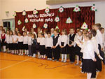 Po Mszy św. wszyscy zgromadzili się na sali gimnastycznej. Tam - po uroczystym wykonaniu przez wszystkich Hymnu Państwowego - powitał nas Dyrektor szkoły pan Dariusz Ochęduszko, który w stronę najmłodszych członków naszej społeczności skierował szczególnie ciepłe słowa.