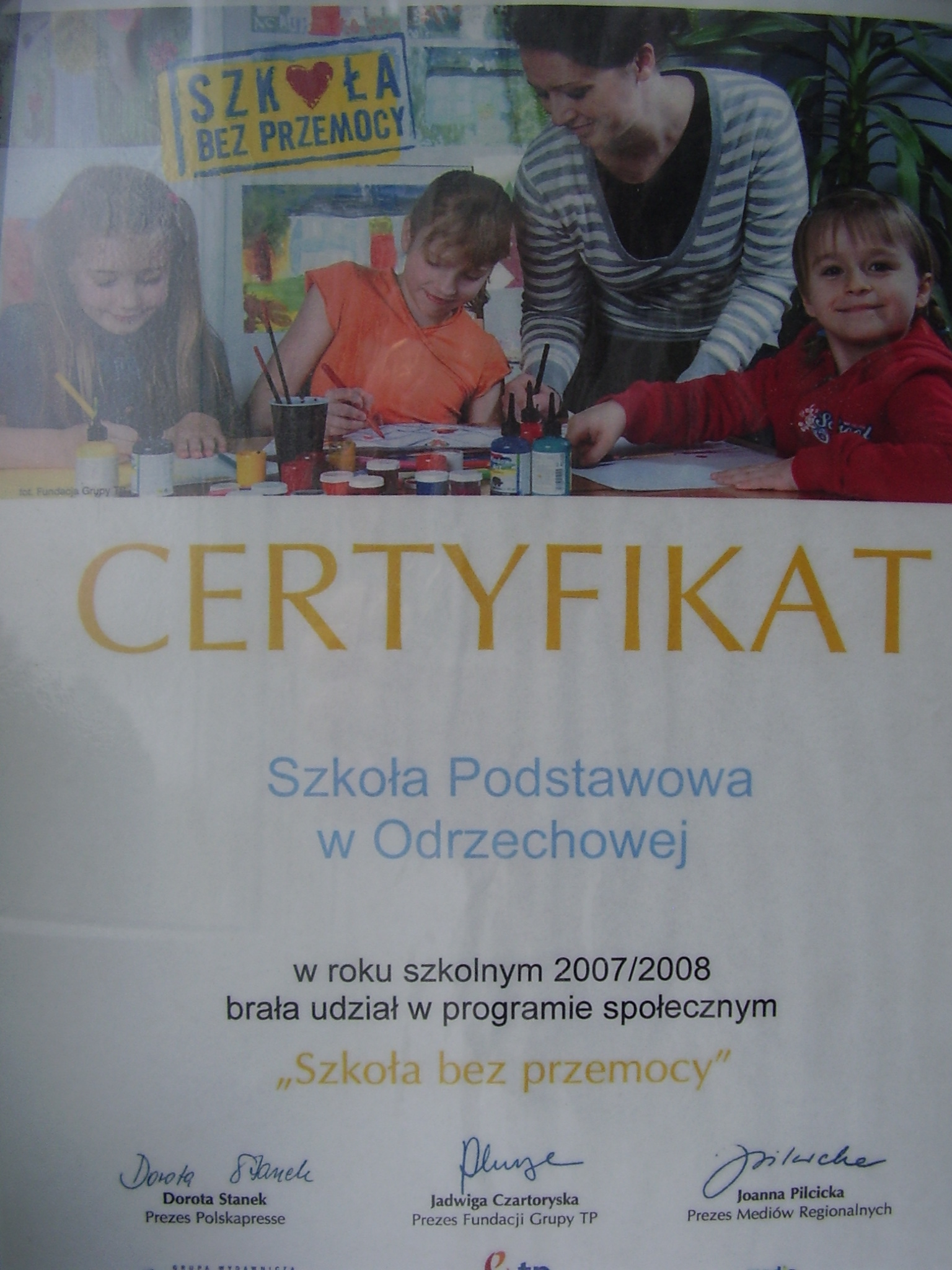 27 września 2008 roku Szkoła Podstawowa w Odrzechowej podobnie jak w latach poprzednich, uczestniczyła w akcji „Sprzątanie Świata” Każdej klasie został przydzielony inny teren. Oddział przedszkolny sprzątał teren wokół szkoły , klasy młodsze i starsze wyznaczone odcinki miejscowości. Uczniowie podczas sprzątania używali rękawic ochronnych, a śmieci były zbierane do foliowych worków