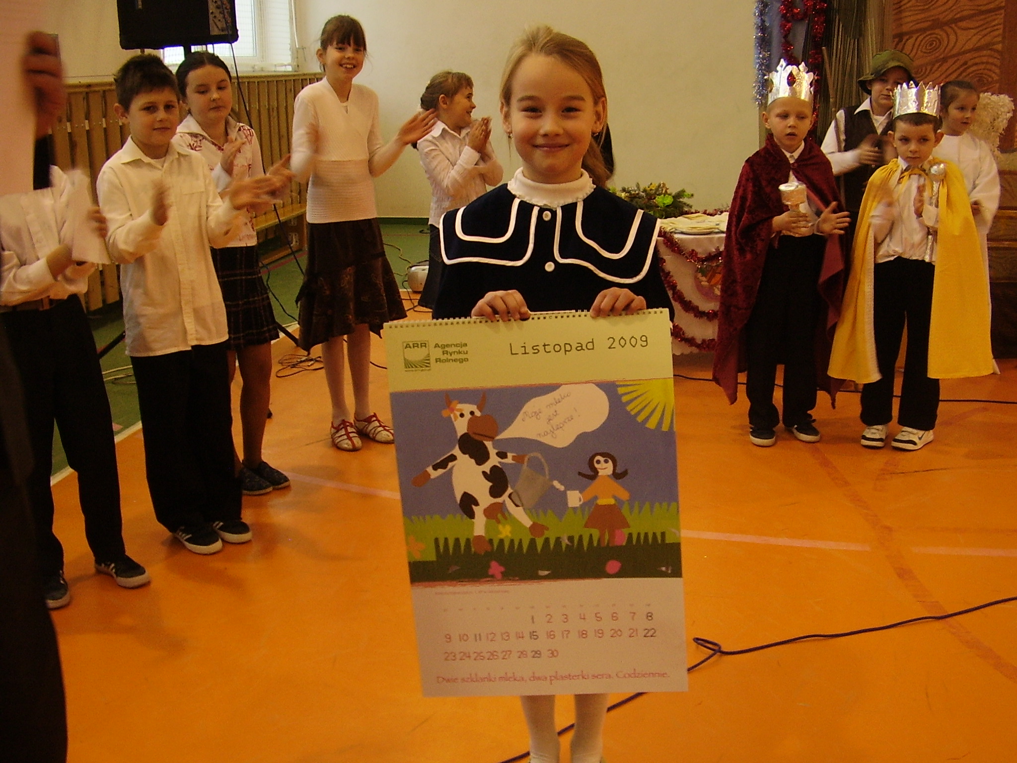 W ubiegłym roku uczennica Wiktoria Kramarczyk otrzymała nagrodę za rysunek w konkursie plastycznym "Pij mleko" i jej rysunek znajduje się na kalendarzu Agencji Rynku Rolnego