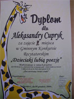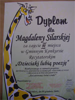 9 grudnia 2008 roku uczennice nauczania zintegrowanego wzięły udział w konkursie "Dzieci lubią poezję